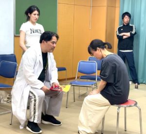 山本さん扮する医師と、フォローする看護師のシンディーさん、
