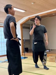 翌日の通し稽古に備えて、芝居を流した時に、ちゃんとつながるか、次の工程を忘れていないか等の確認をしていきます。
