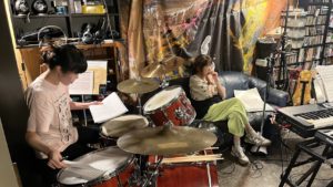 バント収録から数日後、ギター・ベース担当で役名サカタの坂出さんが稽古場に合流です。