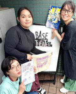ほっと一息の時に、池袋演劇祭の宣伝写真を撮る三姉妹です。